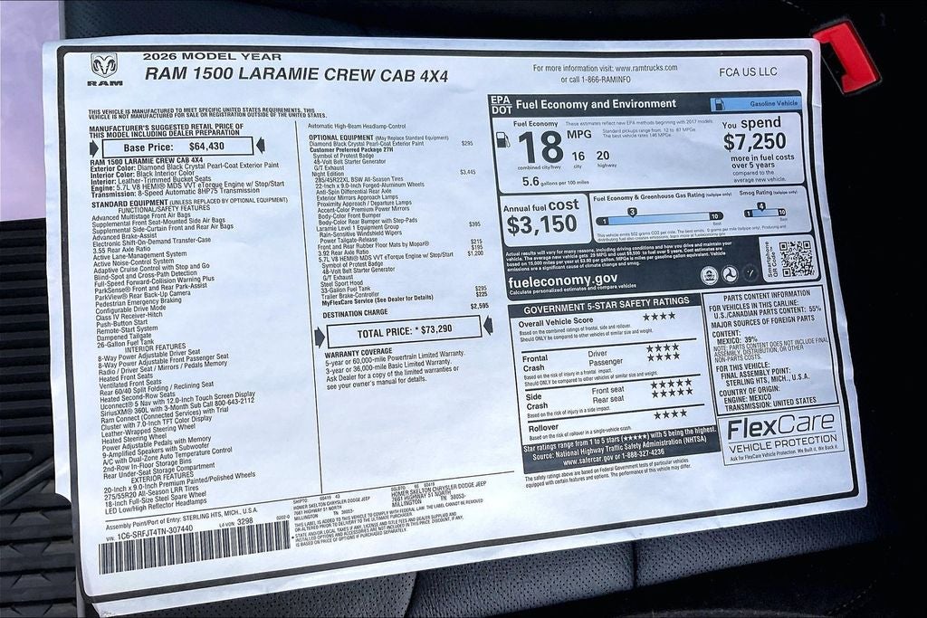 - Fuel Economy Est-Combined (MPG): 18