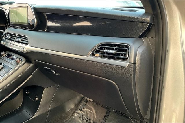 Option Group 01, Palisade Calligraphy, V6, FWD, 12 Speakers, Fully automatic headlights, harman/kardon® Speakers, Heated & Ventilated Front Bucket Seats, Navigation System, Power Liftgate, Power moonroof, Security system, Speed control, Wheels: 20 x 7.5J Calligraphy Exclusive Alloy, 3.648 Axle Ratio, 3rd row seats: split-bench, 4-Wheel Disc Brakes, ABS brakes, Air Conditioning, AM/FM radio: SiriusXM, Apple CarPlay & Android Auto, Auto High-beam Headlights, Auto-dimming Rear-View mirror, Auto-leveling suspension, Automatic temperature control, Brake assist, Bumpers: body-color, Carpeted Floor Mats, Compass, Delay-off headlights, Driver door bin, Driver vanity mirror, Dual front impact airbags, Dual front side impact airbags, Electronic Stability Control, Emergency communication system: Blue Link Connected Car Service (3-year complimentary subscription), Four wheel independent suspension, Front anti-roll bar, Front Bucket Seats, Front Center Armrest, Front dual zone A/C, Front reading lights, Garage door transmitter: HomeLink, Heads-Up Display, Heated door mirrors, Heated front seats, Heated rear seats, Heated steering wheel, Illuminated entry, Knee airbag, Low tire pressure warning, Memory seat, Occupant sensing airbag, Outside temperature display, Overhead airbag, Overhead console, Panic alarm, Passenger door bin, Passenger vanity mirror, Power door mirrors, Power driver seat, Power passenger seat, Power steering, Power windows, Premium Nappa Leather Seat Trim, Radio data system, Radio: AM/FM/MP3 Premium Audio System, Rain sensing wipers, Rear air conditioning, Rear anti-roll bar, Rear reading lights, Rear window defroster, Rear window wiper, Reclining 3rd row seat, Remote keyless entry, Speed-sensing steering, Split folding rear seat, Spoiler, Steering wheel mounted audio controls, Tachometer, Telescoping steering wheel, Tilt steering wheel, Traction control, Trip computer, Turn signal indicator mirrors, Variably intermittent wipers, Ventilated front seats, and Ventilated rear seats.