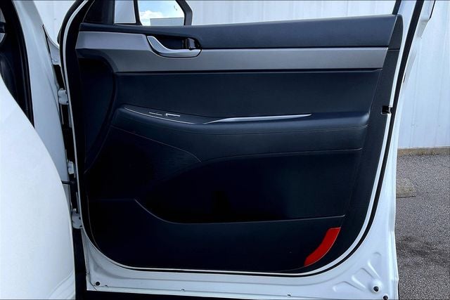 Option Group 01, Palisade SEL, V6, FWD, Apple CarPlay & Android Auto, Fully automatic headlights, Power moonroof, Security system, Speed control, Wheels: 18 x 7.5J Machine Finish Alloy, 3.648 Axle Ratio, 3rd row seats: split-bench, 4-Wheel Disc Brakes, 6 Speakers, ABS brakes, Air Conditioning, AM/FM radio, Auto High-beam Headlights, Auto-dimming Rear-View mirror, Automatic temperature control, Brake assist, Bumper Applique, Bumpers: body-color, Cargo Net, Cargo Tray, Carpeted Floor Mats, Cloth Seat Trim, Delay-off headlights, Driver door bin, Driver vanity mirror, Dual front impact airbags, Dual front side impact airbags, Electronic Stability Control, Four wheel independent suspension, Front anti-roll bar, Front Bucket Seats, Front Center Armrest, Front dual zone A/C, Front reading lights, Garage door transmitter: HomeLink, Heated door mirrors, Heated Front Bucket Seats, Heated front seats, Illuminated entry, Knee airbag, Low tire pressure warning, Mudguards, Navigation System, Occupant sensing airbag, Outside temperature display, Overhead airbag, Overhead console, Panic alarm, Passenger door bin, Passenger vanity mirror, Power door mirrors, Power driver seat, Power steering, Power windows, Radio data system, Radio: AM/FM/MP3 Display Audio, Rear air conditioning, Rear anti-roll bar, Rear reading lights, Rear window defroster, Rear window wiper, Reclining 3rd row seat, Remote keyless entry, Roof Rack Cross Rails, Speed-sensing steering, Split folding rear seat, Spoiler, Steering wheel mounted audio controls, Tachometer, Telescoping steering wheel, Tilt steering wheel, Traction control, Trip computer, Turn signal indicator mirrors, and Variably intermittent wipers.
