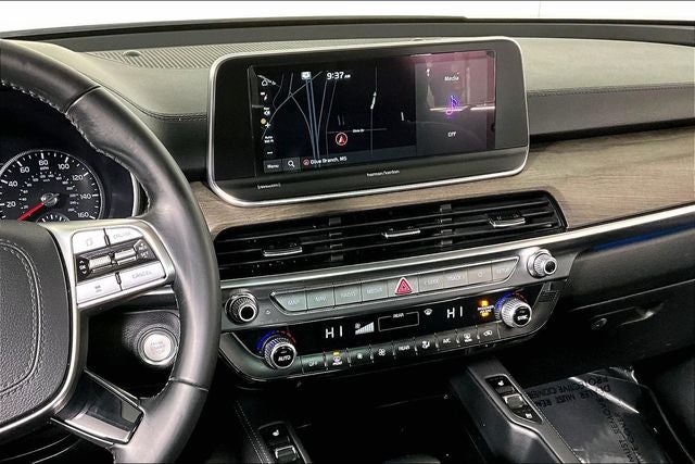 10 Speakers, Fully automatic headlights, Navigation System, Power Liftgate, Power moonroof, Radio: AM/FM harman/kardon Audio System, Security system, Speed control, Wheels: 20 x 7.5 Black Alloy, 3.648 Axle Ratio, 3rd row seats: split-bench, 4-Wheel Disc Brakes, ABS brakes, Air Conditioning, Alloy wheels, AM/FM radio: SiriusXM, Apple CarPlay & Android Auto, Auto High-beam Headlights, Auto-dimming Rear-View mirror, Automatic temperature control, Brake assist, Bumpers: body-color, Compass, Delay-off headlights, Driver door bin, Driver vanity mirror, Dual front impact airbags, Dual front side impact airbags, Electronic Stability Control, Emergency communication system: 911 Connect, Four wheel independent suspension, Front anti-roll bar, Front Bucket Seats, Front Center Armrest, Front dual zone A/C, Front fog lights, Front reading lights, Garage door transmitter: HomeLink, harman/kardon® Speakers, Heated & Ventilated Front Bucket Seats, Heated door mirrors, Heated front seats, Illuminated entry, Knee airbag, Leather Seat Trim, Leather Shift Knob, Leather steering wheel, Low tire pressure warning, Memory seat, Mud Guard Kit, Occupant sensing airbag, Outside temperature display, Overhead airbag, Overhead console, Panic alarm, Passenger door bin, Passenger vanity mirror, Power door mirrors, Power driver seat, Power passenger seat, Power steering, Power windows, Radio data system, Rear air conditioning, Rear anti-roll bar, Rear audio controls, Rear reading lights, Rear window defroster, Rear window wiper, Reclining 3rd row seat, Remote keyless entry, Roof rack: rails only, Smart Key w/ Push Button and Remote Start, Speed-sensing steering, Split folding rear seat, Spoiler, Steering wheel mounted audio controls, Tachometer, Telescoping steering wheel, Tilt steering wheel, Traction control, Trip computer, Turn signal indicator mirrors, Variably intermittent wipers, and Ventilated front seats.