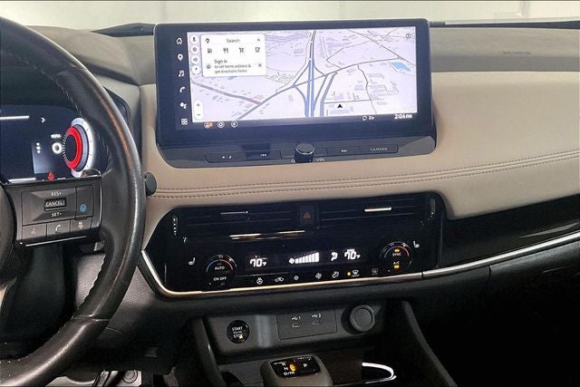 Rogue SL, 1.5L DOHC, AWD, Fully automatic headlights, Navigation system: NissanConnect with Navigation and Services, Power Liftgate, Security system, Speed control, Wheels: 19 Dark Painted Machine Finished Alloy, 4-Wheel Disc Brakes, 5.676 Axle Ratio, 6 Speakers, ABS brakes, Air Conditioning, AM/FM radio: SiriusXM w/360L, Auto High-beam Headlights, Auto-dimming Rear-View mirror, Automatic temperature control, Brake assist, Bumpers: body-color, Delay-off headlights, Driver door bin, Driver vanity mirror, Dual front impact airbags, Dual front side impact airbags, Electronic Stability Control, Emergency communication system: NissanConnect Services, First Aid Kit, Floor Mats w/2-Piece Cargo Area Protector, Four wheel independent suspension, Front anti-roll bar, Front Bucket Seats, Front Center Armrest, Front dual zone A/C, Front reading lights, Heated door mirrors, Heated Front Bucket Seats, Heated front seats, Heated steering wheel, Illuminated entry, Knee airbag, Leather steering wheel, Leather-Appointed Seat Trim, Low tire pressure warning, NissanConnect featuring Apple CarPlay and Android Auto, Occupant sensing airbag, Outside temperature display, Overhead airbag, Overhead console, Panic alarm, Passenger door bin, Passenger vanity mirror, Power door mirrors, Power driver seat, Power passenger seat, Power steering, Power windows, Radio data system, Radio: AM/FM NissanConnect w/Navigation, Rear anti-roll bar, Rear seat center armrest, Rear side impact airbag, Rear window defroster, Rear window wiper, Remote keyless entry, Retractable Cargo Cover, Speed-Sensitive Wipers, Split folding rear seat, Spoiler, Steering wheel mounted audio controls, Tachometer, Telescoping steering wheel, Tilt steering wheel, Traction control, Trip computer, Turn signal indicator mirrors, and Variably intermittent wipers.