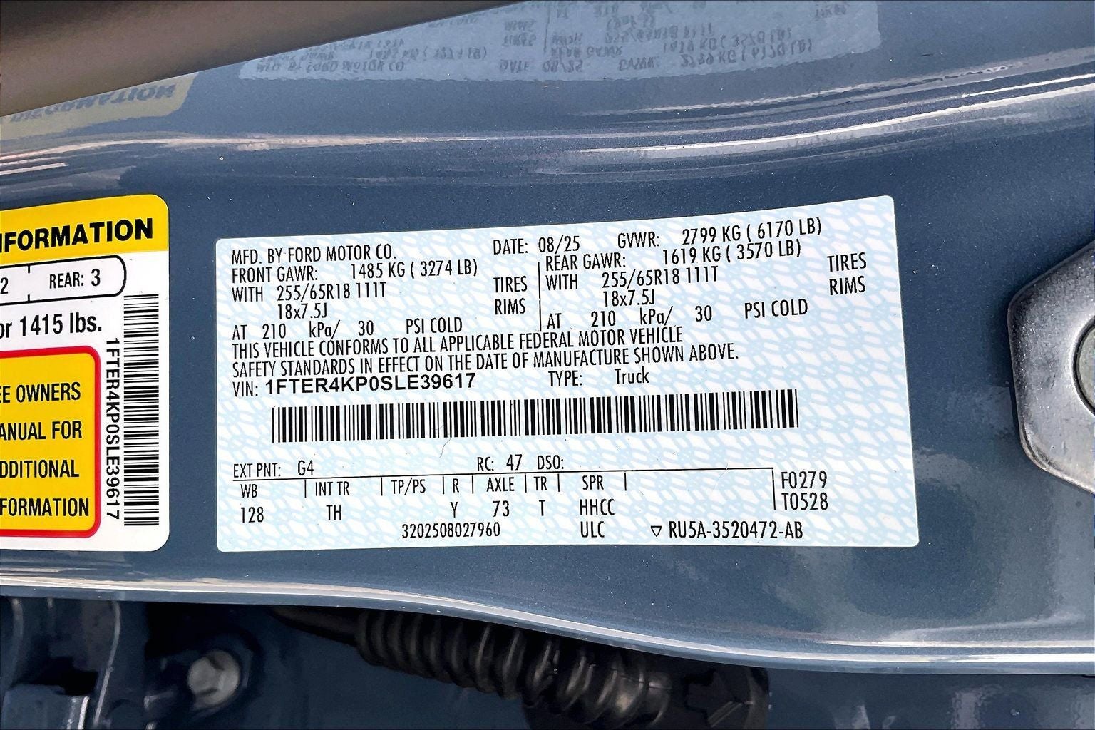 2025 Ford Ranger Lariat Azure Gray Metallic 2.7L EcoBoost V6 10-Speed Automatic 4WD Autocheck One Owner, **CLEAN VEHICLE HISTORY REPORT**, **ONE OWNER**, **LOCAL TRADE**, **LOW MILES**, RECENT ARRIVAL, Advanced Towing Package, Body Color Painted Front Fascia, Chrome Accent Package, Chrome Center Bar & Grille Surround, Chrome Rear Bumper, Class IV Trailer Hitch Receiver, Electronic-Locking Rear Differential, Equipment Group 500A Standard, Front Bucket Seats, Front dual zone A/C, Heated door mirrors, Heated front seats, Internet access capable: FordPass Connect 4G, Leather steering wheel, Memory seat, Navigation system: Connected Navigation, Painted Body-Color Wheel Lip Molding, Power driver seat, Power passenger seat, Pro Trailer Backup Assist, Rain sensing wipers, Rear Parking Sensors w/Trailer Guidance, Remote keyless entry, Sport Appearance Package, Steering wheel mounted audio controls, SYNC 4A w/Connected Navigation, Tough Bed Spray-In Bedliner, Trailer Brake Controller, Trailer Tow Package, Variably intermittent wipers, Wheels: 18 Chrome-Like PVD.